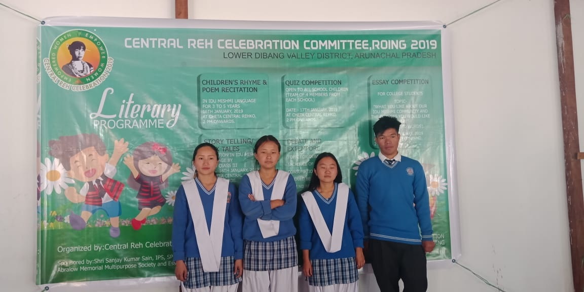 The following literary activities were undertaken:- Children’s rhyme & Poem recitation in Idu Language for age 3 to 5 years ,story narration in Idu Language for Class KG to Class III , competition in Idu Language about Idu culture ,tradition and achievements , essay writing completion for college students with the topic “what you like about our Idu Mishmi Community and the changes you would like to see”, quiz competition , extempore speech, etc were conducted successfully at ChetaRekho. More than 300 students took part in these competition events. The programme was organized by Abralow Memorial Multipurpose Society in collaboration with Central Reh Celebration Committee.